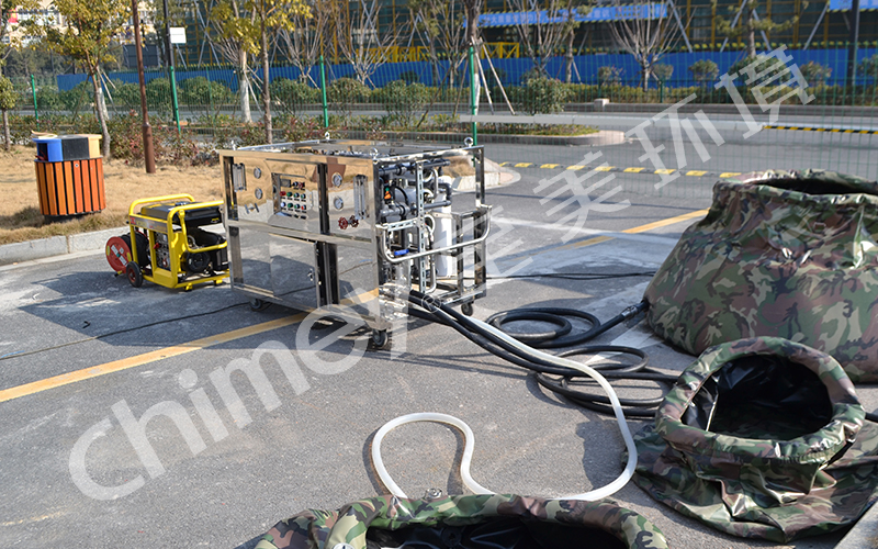 The device offers customizable water purification modules for various scenarios: ultrafiltration, ultrafiltration + reverse osmosis, or seawater desalination. It produces water that meets China's "Drinking Water Sanitation Standard" (GB 5749-2022). The module includes a rack, water pump, membrane components, pipelines, and a control system, ensuring safe drinking water in diverse and complex environments.